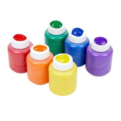 This Crayola Washable Project Paint Set is great for introducing young children to the joys of painting with extra-bold colors. This child-friendly paint has a washable formula for easy cleanup and enhanced mixing and flow characteristics for loads of creative possibilities. It can be used on a variety of surfaces including construction paper, poster board, drawing paper, cardboard tubes and boxes, paper mache, and more. The set includes 6 bottles (2 ounces each) in the following classic colors: blue, violet, red, yellow, green, and orange.Features