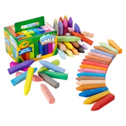 This set of Crayola Washable Sidewalk Chalk is the perfect solution for creating colorful and creative artwork on sidewalks, driveways, and other outdoor surfaces. Each stick delivers bold color and easy laydown, and features a fun crayon-like design that children will love! A washable formula makes cleanup a breeze. Plus, the anti-roll shape keeps the sticks within reach. This set contains 48 sticks in an assortment of colors.Features