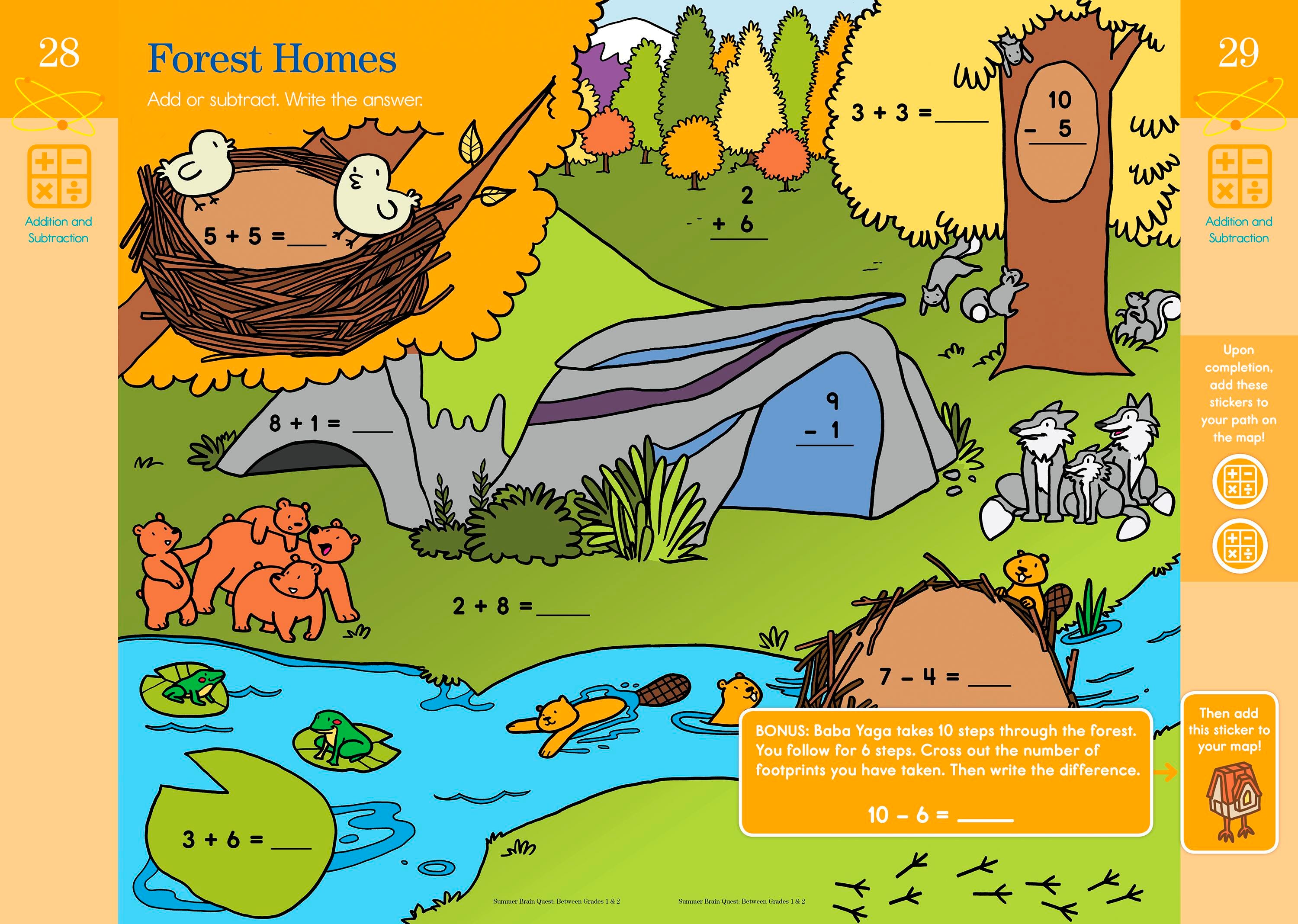 Stop the summer slide! From the creators of America’s #1 educational bestseller Brain Quest, stay sharp during summer break with Summer Brain Quest: Between Grades 1 & 2—a workbook, a game, and an outdoor adventure in one! It’s an interactive and personalized quest that will keep kids excited about learning all summer long between 1st and 2nd grades. Summer Brain Quest: Between Grades 1 & 2 begins with a map that guides you through a workbook filled with activities based on reading comprehension, writing, addition and subtraction, earth science, the seasons, telling time, and more! As you complete activities, you earn stickers to track your progress on the map. Jam-packed with curriculum-based exercises, bonus challenges, outside activities, over 150 stickers, a summer reading list, and a Brain Quest mini deck.Features