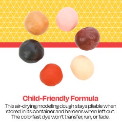 Modeling Dough by School Smart is soft, pliable, and ready to be molded into masterpieces! Young artists can finally take art into their own hands with non-staining, non-toxic, gluten-free model-making material. The dough is easily reusable if returned to its plastic container, or it can be air-dried to a workable hardness for finished sculptures. This set features 6 assorted skin tone colors that make creating dough families and friends extra fun, all while providing multicultural awareness in the classroom. Each color of the non-staining dough comes in a 1-pound container. Conforms to ASTM D-4236 standards.Features
