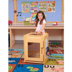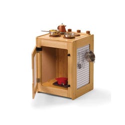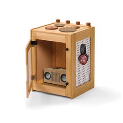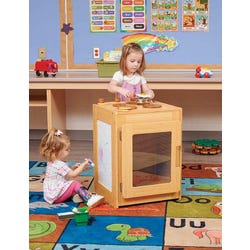 This bamboo Make-Believe Stove features rotating dials and burners for a more tactile play experience. It also includes a magnetic whiteboard and a pegboard panel on the sides to add emergent literacy and imaginative play opportunities. A clear acrylic panel on the door allows for items inside to be easily viewed. The stove can be purchased as a standalone item or as part of the Copernicus Make-Believe Kitchen Set (item 2155633). Measures 19-1/2 W x 19-1/2 D x 27-1/2 H inches.Features