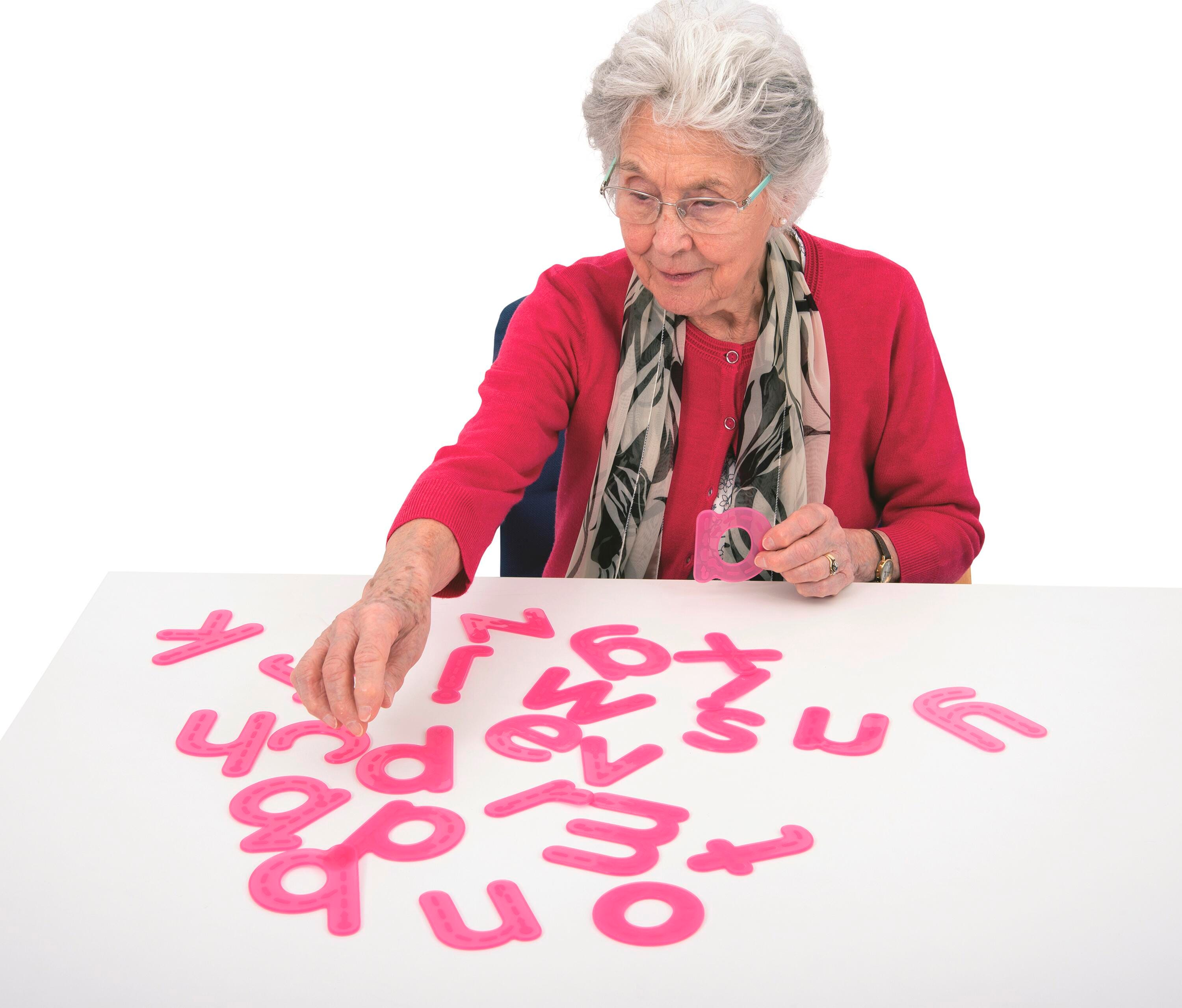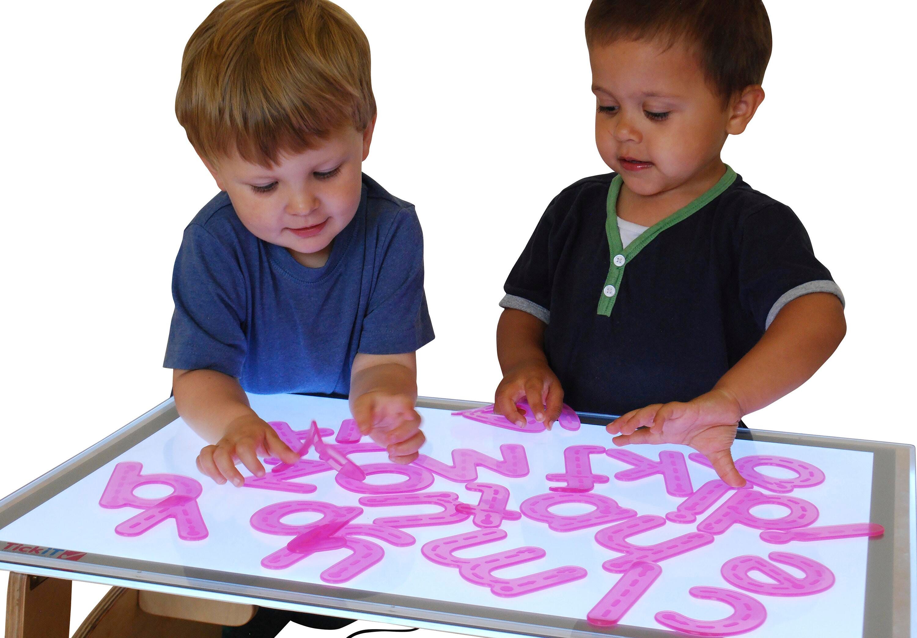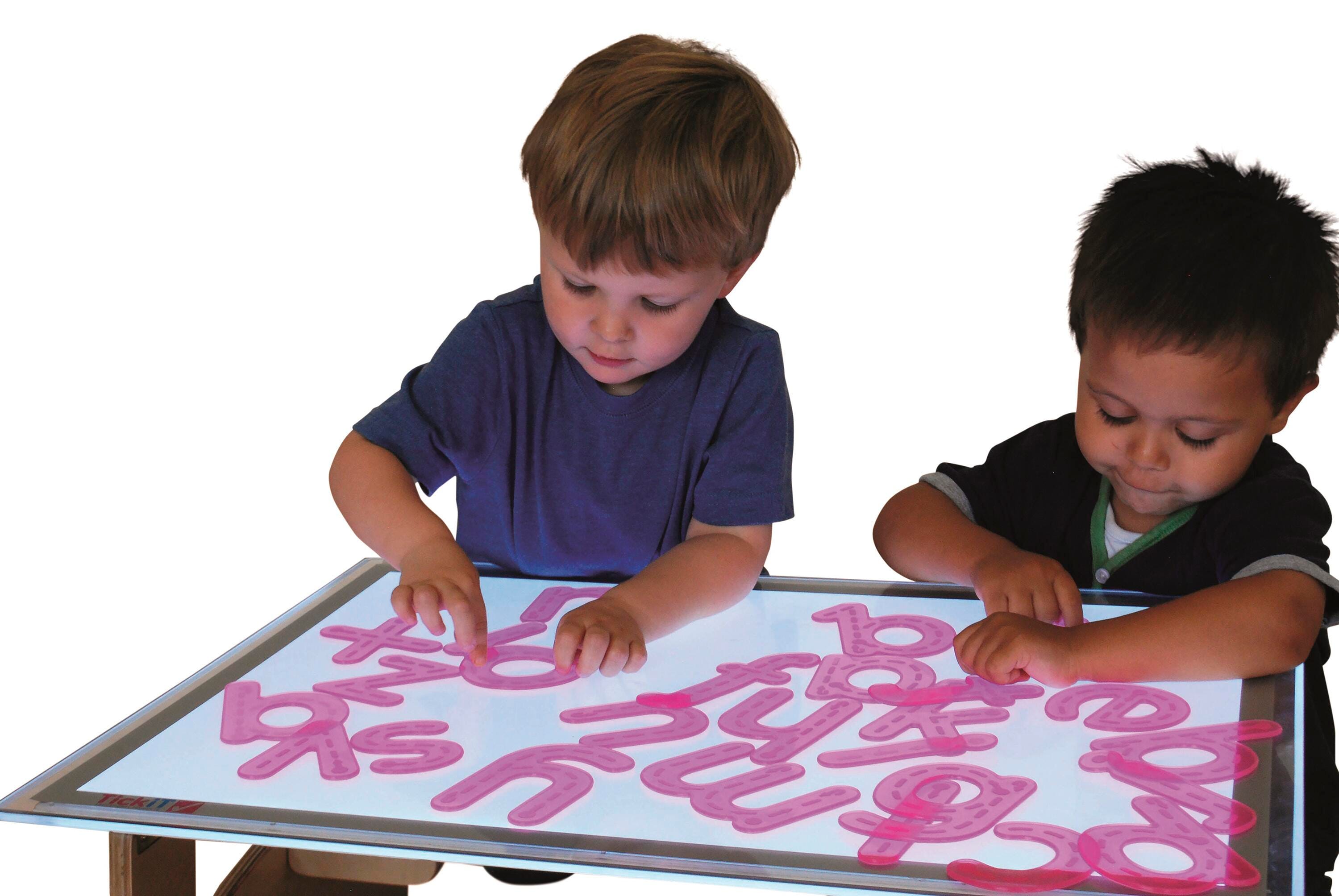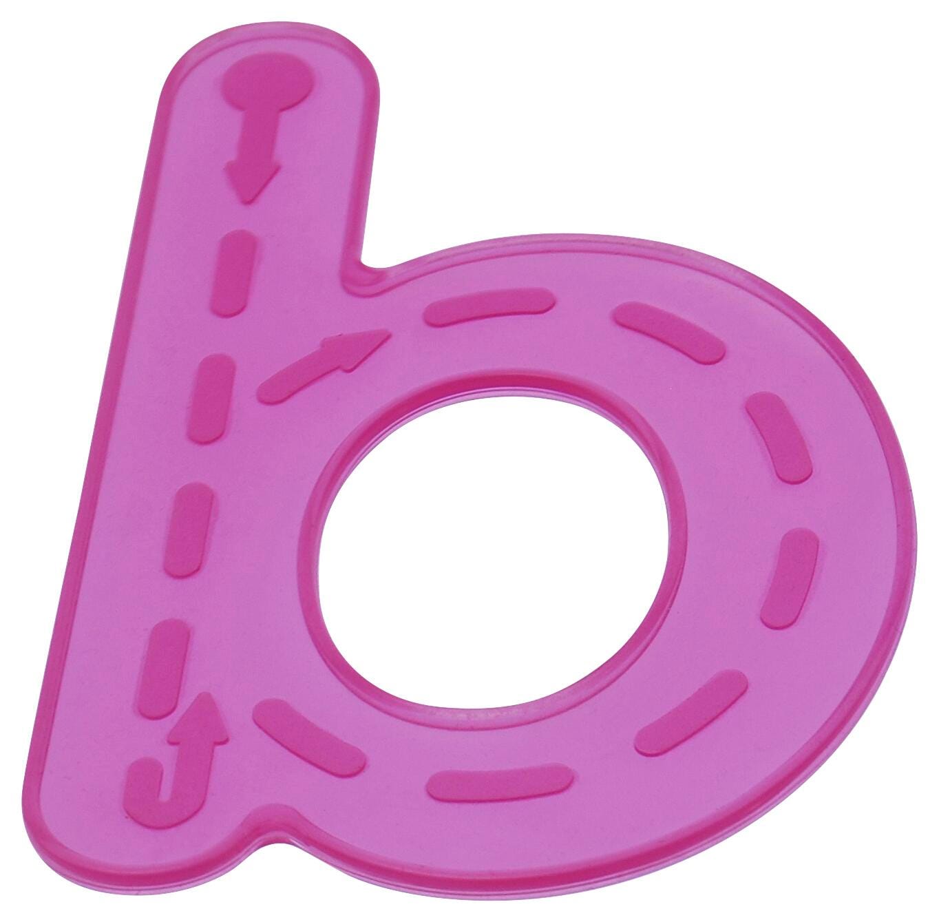These large, 4-3/4 inch transparent pink silicone letters (26 pieces) are strong, soft and pliable and can be used in everyday play - in the sand pit, on the floor, on a light panel and in water. In a school friendly font they are useful for demonstration purposes, for display or for children to use themselves. Pieces include molded tracing lines for children to follow. Ideal for preschools, nurseries and primary schools, the sets are easily cleaned after use in soapy water or in a dishwasher.