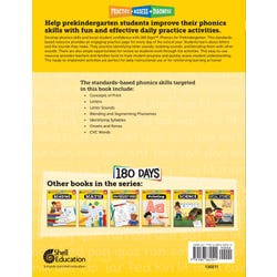 Shell Education delivers a fun and effective way to learn phonics, created by experienced educators! 180 Days™: Phonics offers a purposeful practice designed to help prekindergarten students master the basics of phonics through a variety of fun and interactive activities. This workbook is packed with exercises that focus on letter recognition, sound identification, and basic word formation, all presented in a playful, visually appealing, and age-appropriate format. Great for homeschooling or classroom learning, these workbooks also help kids retain educational knowledge during the summer or stay-at-home learning periods. This workbook supports foundational literacy development and keeps young learners motivated and excited about their phonics journey. Ideal for classroom use and at-home practice, it is a valuable tool for any early learner.Features