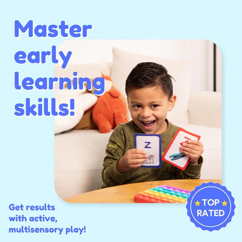 Builds language skills with activities related to letter sounds and recognition, early phonics, and letter tracing