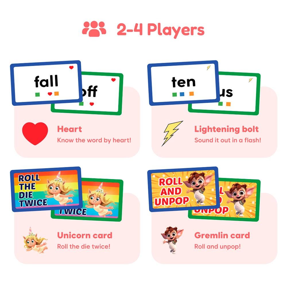 Sight Words from The Fidget Game is a scalable, hands-on game that helps students master the most important words for their grade level! The game features card packs for grades PreK through 3rd, so it can grow with your child and provide the practice they need as they become confident, fluent readers. This game is an excellent tool for the classroom or at-home learning and helps children quickly recognize high-frequency words, build fluency, and improve comprehension.Features