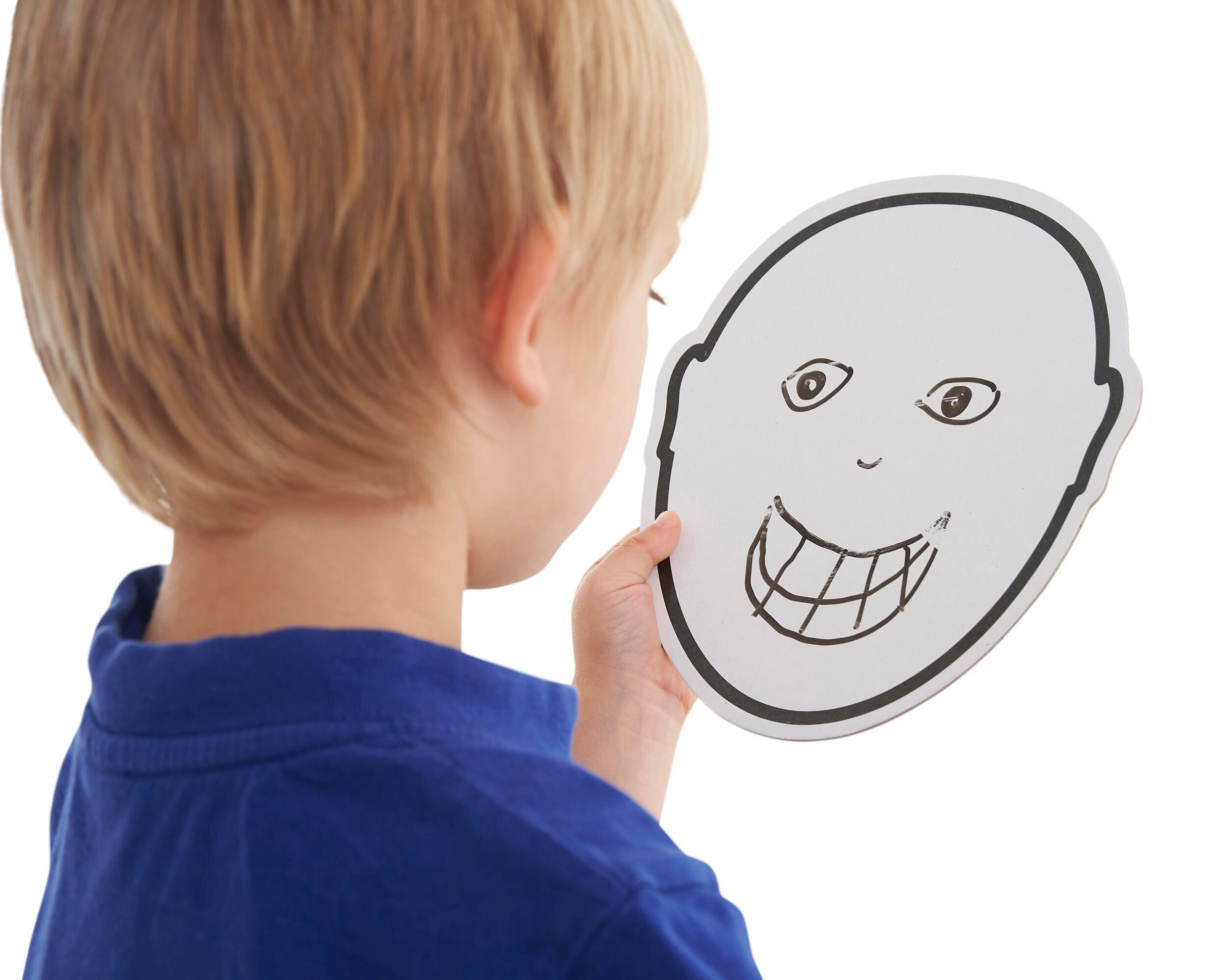 Help enhance children's emotional intelligence with Understanding Feelings Pack. Components are designed to help learners recognize the wide spectrum of feelings and enable them to communicate their own feelings more effectively with others. A set of transparent acetate faces with different emotions is perfect for reporting emotions of the day or playing educational games. Three blank faces and blank face-shaped dry erase boards add to the mix, allowing users to fill in their own feelings. Face-shaped mirrors help users see their moods reflected back to them, and recognize how eyes, eyebrows, and mouth look and change with shift in feelings. Perfect for classroom, home, or therapy sessions. Faces measures 8-1/4 x 7-1/4 inches. Included poster with labeled expressions measures 11-7/10 x 16 inches.Features