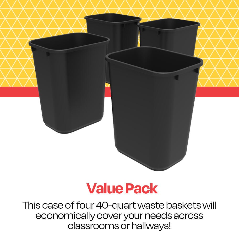 School Smart Indoor Waste Basket, 40 Quart, Black, Case of 4