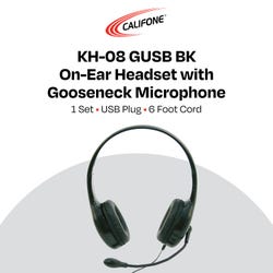 Califone KH-08 GUSB BK On-Ear Headset with Gooseneck Microphone, USB, Black
