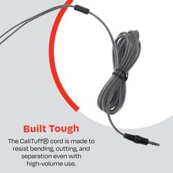 - A highly durable CaliTuff cord on these headphones for children features a braided, PVC-jacketed material with a reinforced earcup entry point to resist bending, cutting, and separation