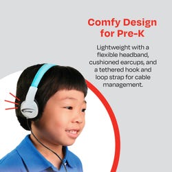 Equip young students with these light blue and white children’s headphones for listening and learning in the classroom.