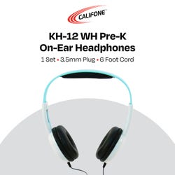 Califone KH-12 WH Pre-K On-Ear Headphones, 3.5mm, Light Blue/White