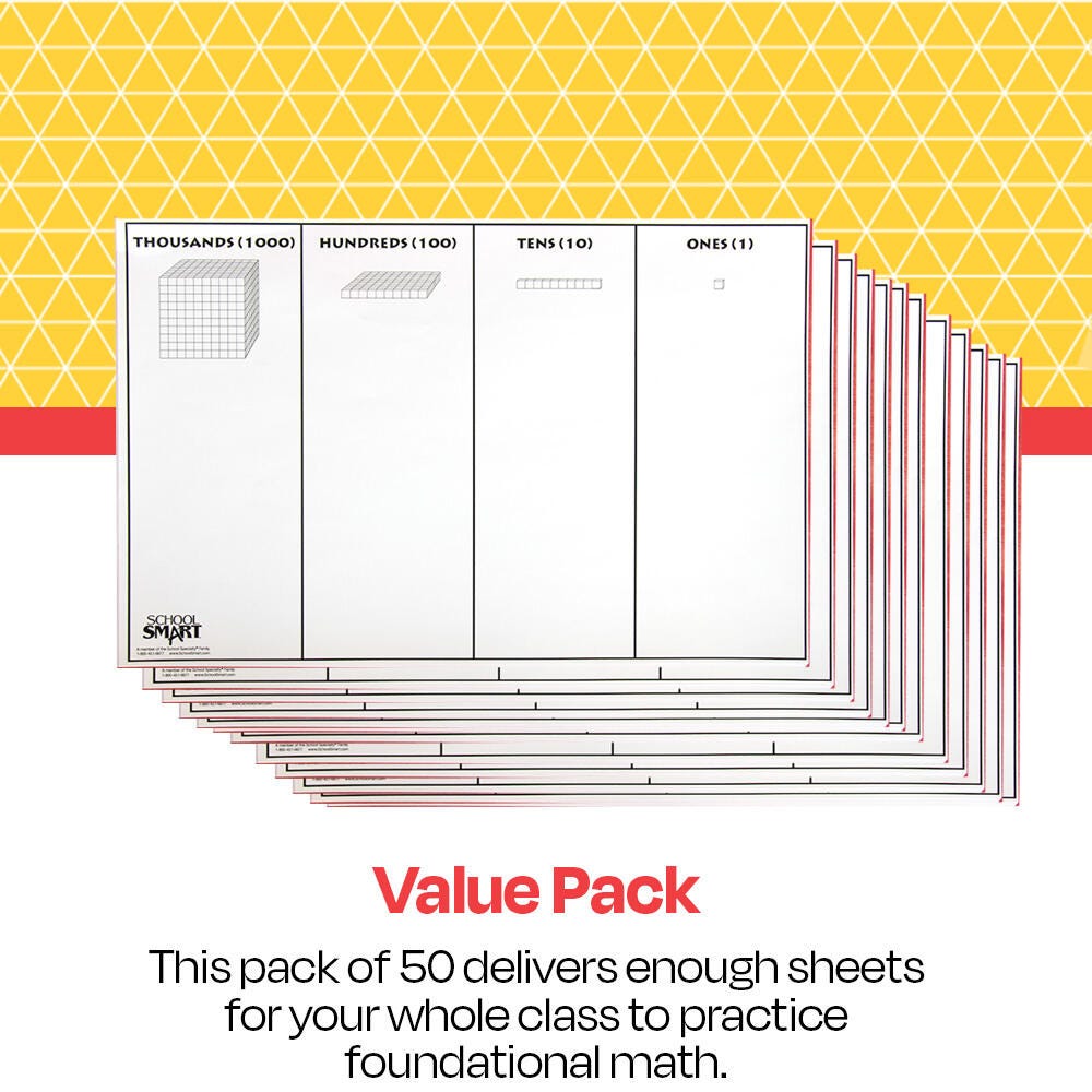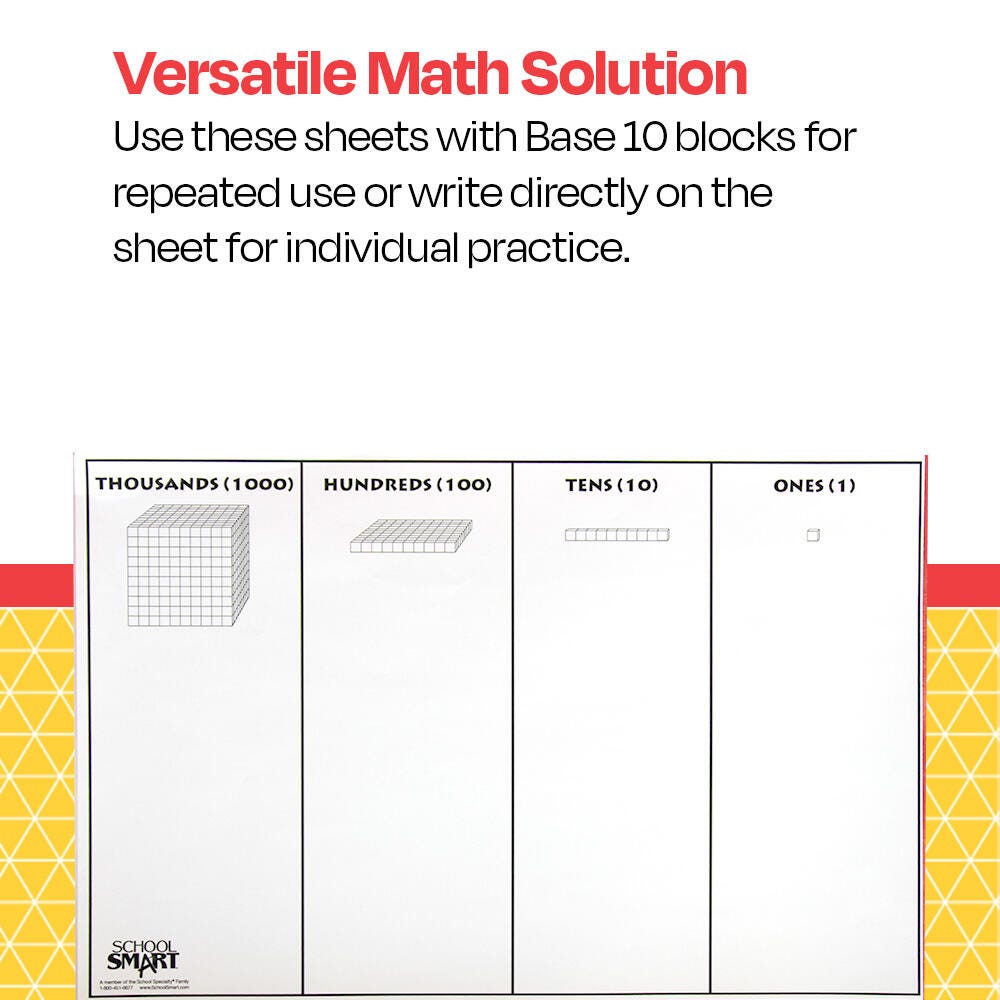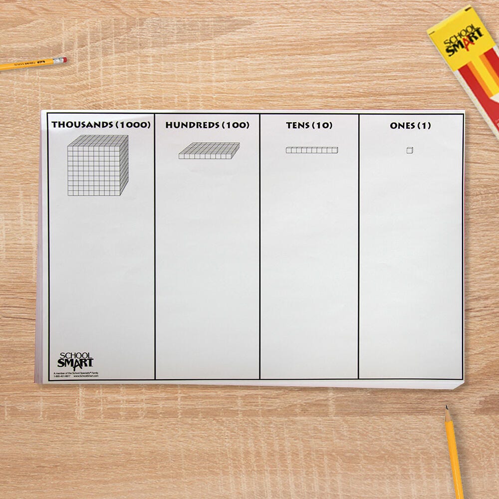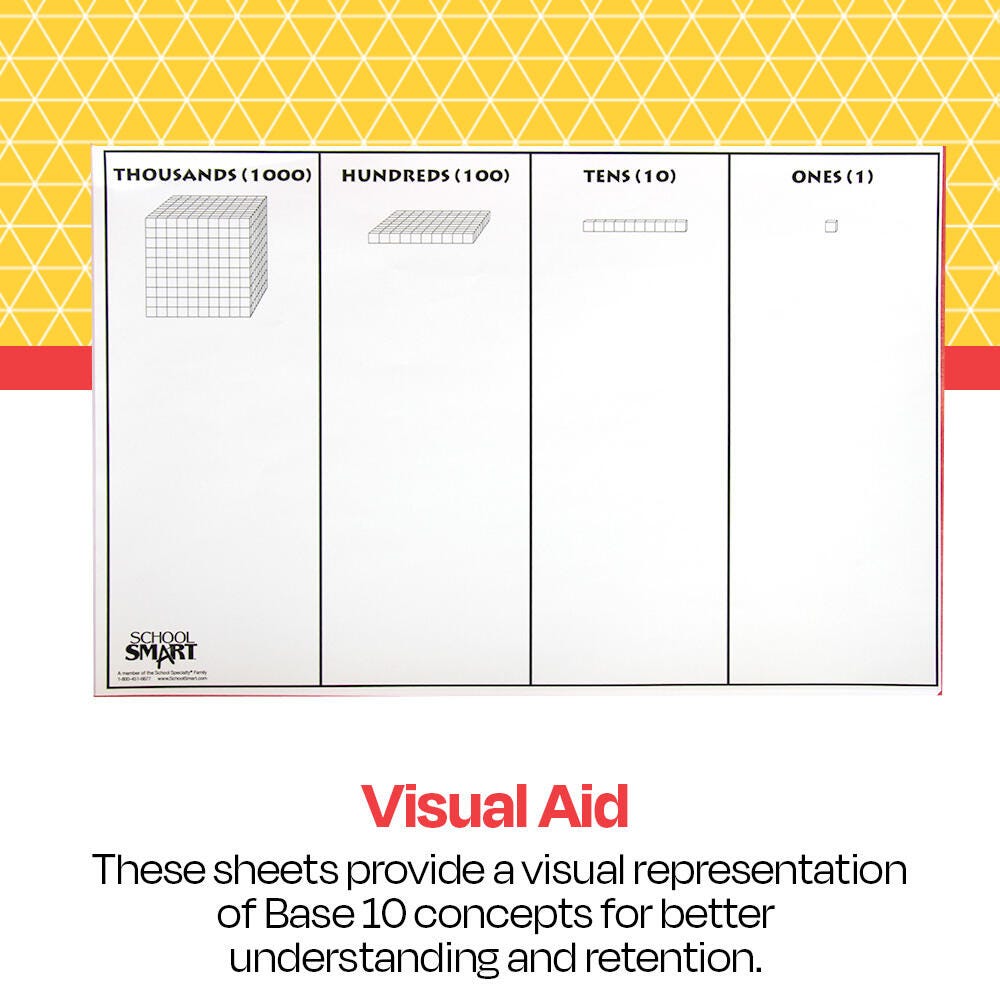 These Base 10 Activity Pads from School Smart provide a visual way for young students to practice early math and counting concepts. They are great when paired with counters or Base 10 blocks for sorting manipulatives to represent numbers based on the power of 10. This pack contains 50 activity pads.
