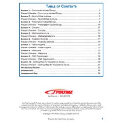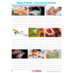 Full color guide includes self-directed readings, easy to follow illustrated explanations, pause and review questions, interactive activities, key vocabulary review and assessment questions. Covers: alcohol, prescription drugs, cocaine, methamphetamines, steroids, hallucinogens, marijuana, CNS depressants, substance abuse treatment. 36 total pages.Features