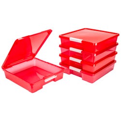 Storex Classroom Project Box, 13-1/4 x 15-1/4 x 3-1/4 Inches, Transparent Red, Pack of 5