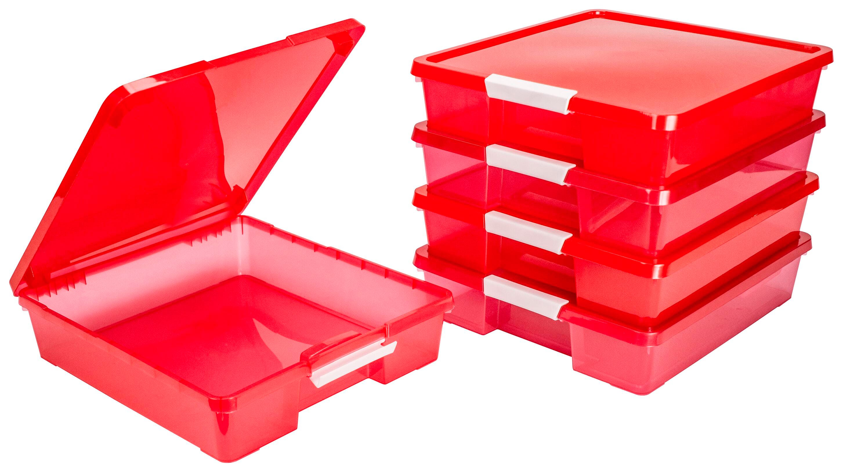 Storex Classroom Project Box, 13-1/4 x 15-1/4 x 3-1/4 Inches, Transparent Red, Pack of 5