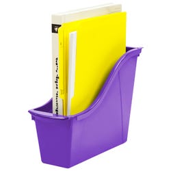 Keep your reading material organized and within easy reach with the Storex Interlocking Book Bin. This versatile plastic bin can be linked together with other Storex book bins to make a long, sturdy bookcase, and/or be used singularly to carry a set of books to your reading corner. The handles are perfectly sized for big and small hands. Small bin size (at 11-3/4 L x 8-1/2 H x 4-1/2 W inches) fits into narrow 12-inch bookcases and accommodates taller books and letter-size file folders inside. Purple Bin is also available in other bright colors, which are all ideal for early childhood classrooms or STEM and STEAM material organization. Label pouches sold separately. Colors may vary.Features