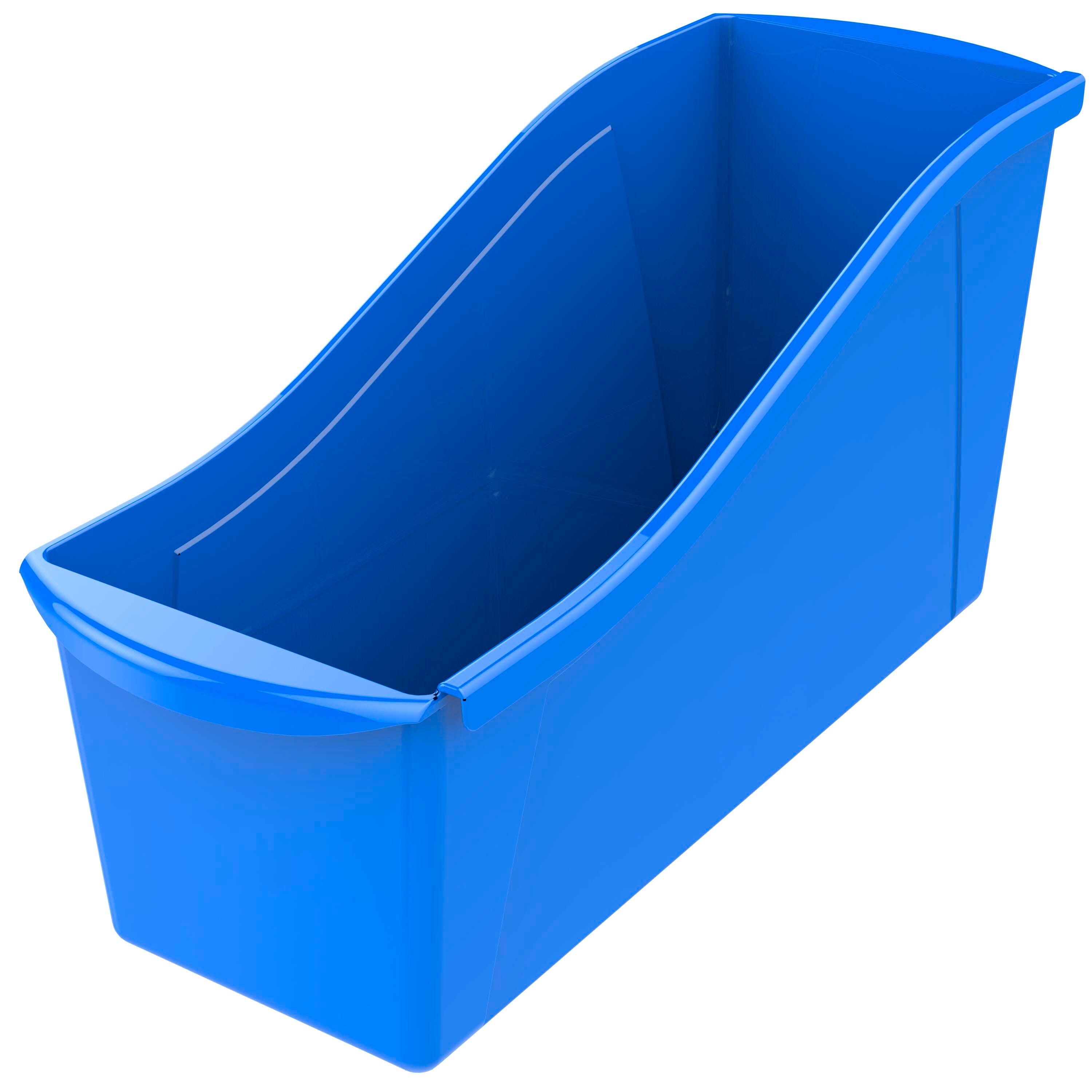 Storex Interlocking Book Bins, 14-1/4 x 5-1/4 x 7 Inches, Large, Blue, Pack of 6