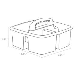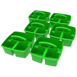 Sort (and transport) your supplies quickly and easily with the Storex Caddy. Design features 3 compartments, 1 large and 2 small, with rounded handles that have no sharp edges for a comfortable grip. The 2 small compartment interior dimensions are 3-1/2 L x 3-1/2 W x 3-3/4 D inches; the large compartment measures 8 L x 3-1/2 W x 3-3/4 D inches. Durable, drop-resistant plastic is also completely washable and dishwasher safe. Sold as pack of 6 (all in green color). Colors may vary.Features