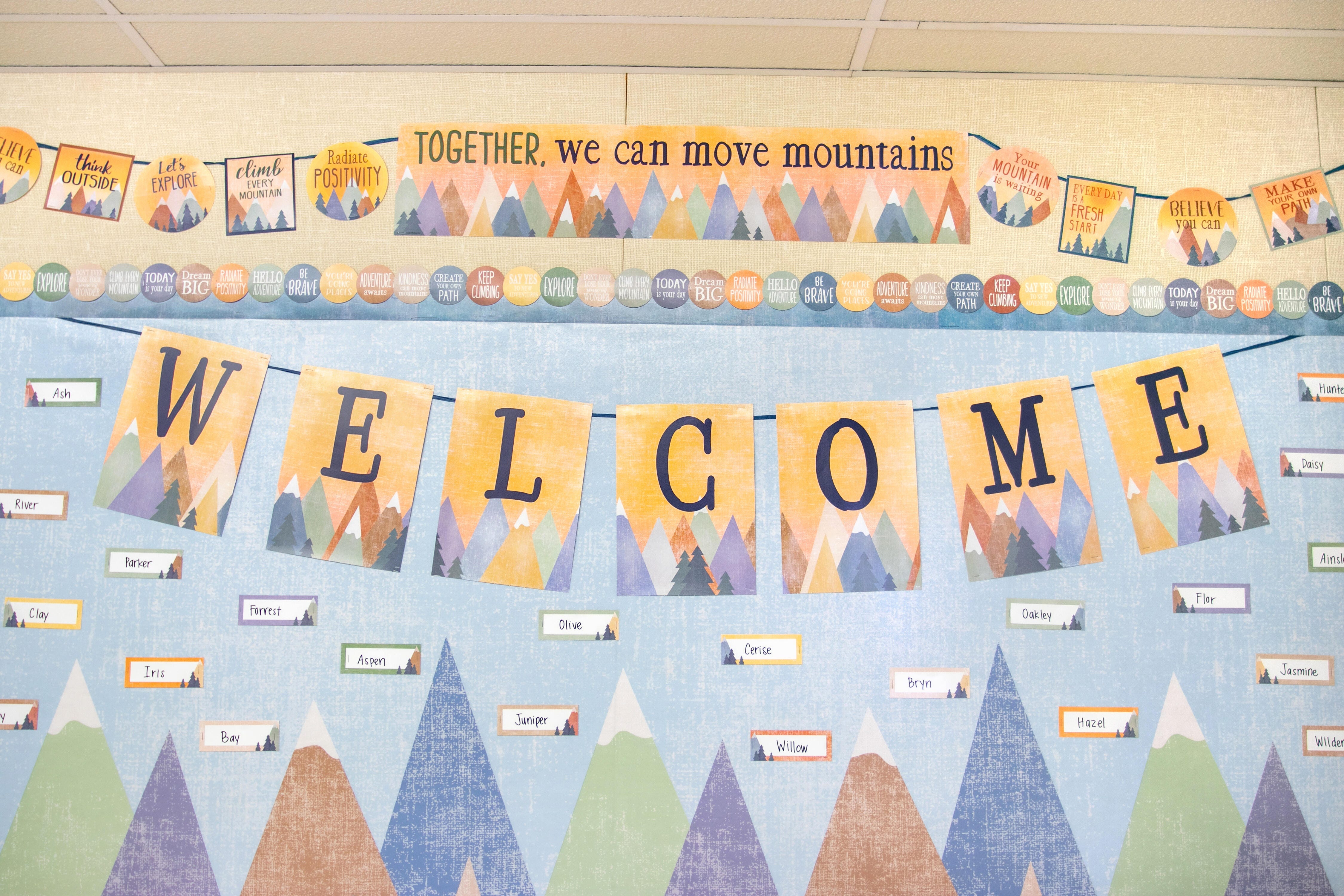 This revolutionary non-woven moving mountains themed fabric makes creating beautiful bulletin board backdrops quick and easy!
