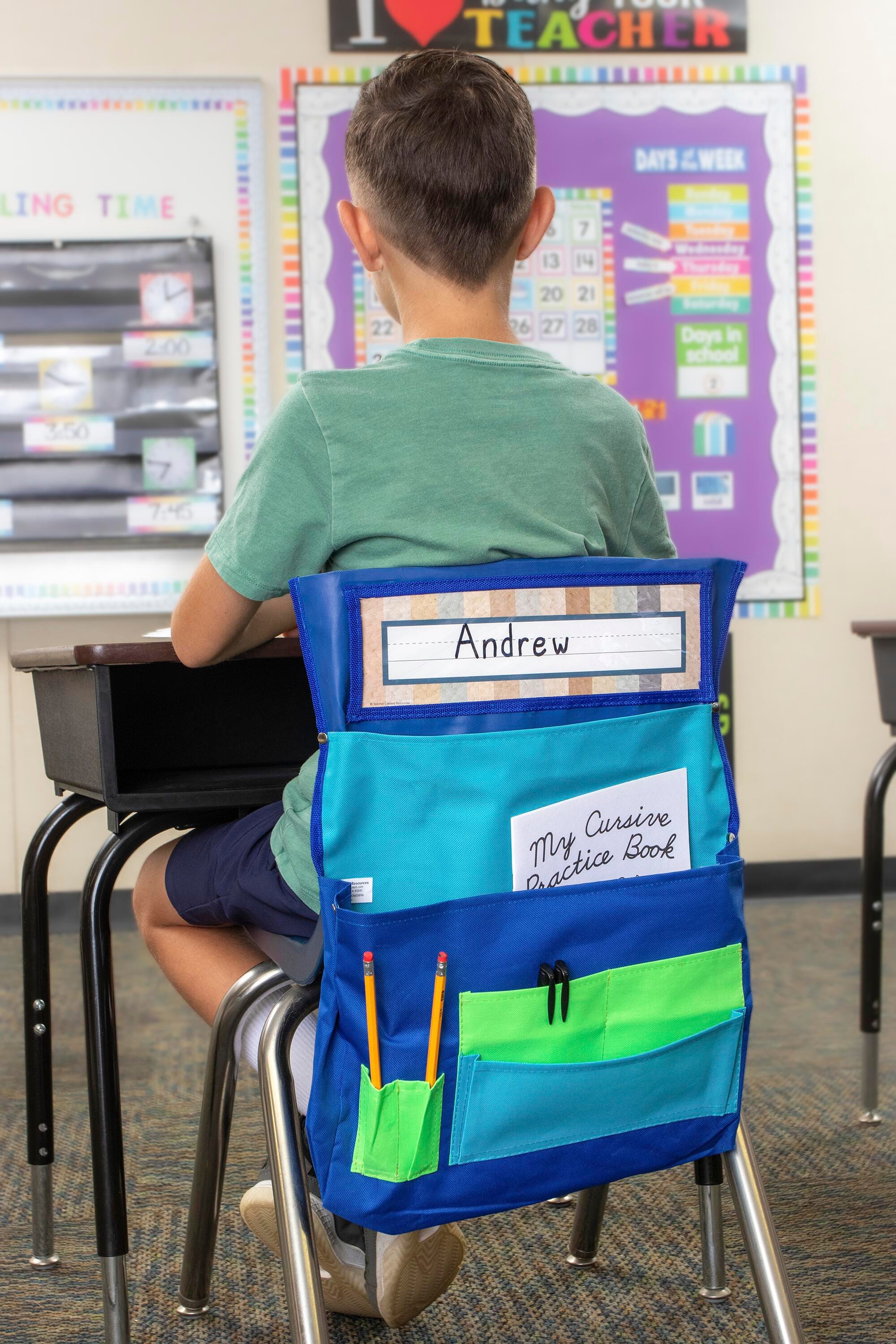 Teacher Created Resources Chair Pocket, 15-1/2 Inches, Blue/Teal/Lime