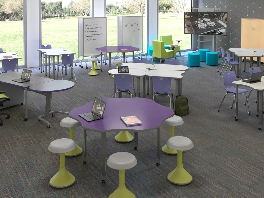 Discover the possibilities for a classroom space tailored to students’ learning needs, with flexible furniture, soft seating, group desks, and more.
