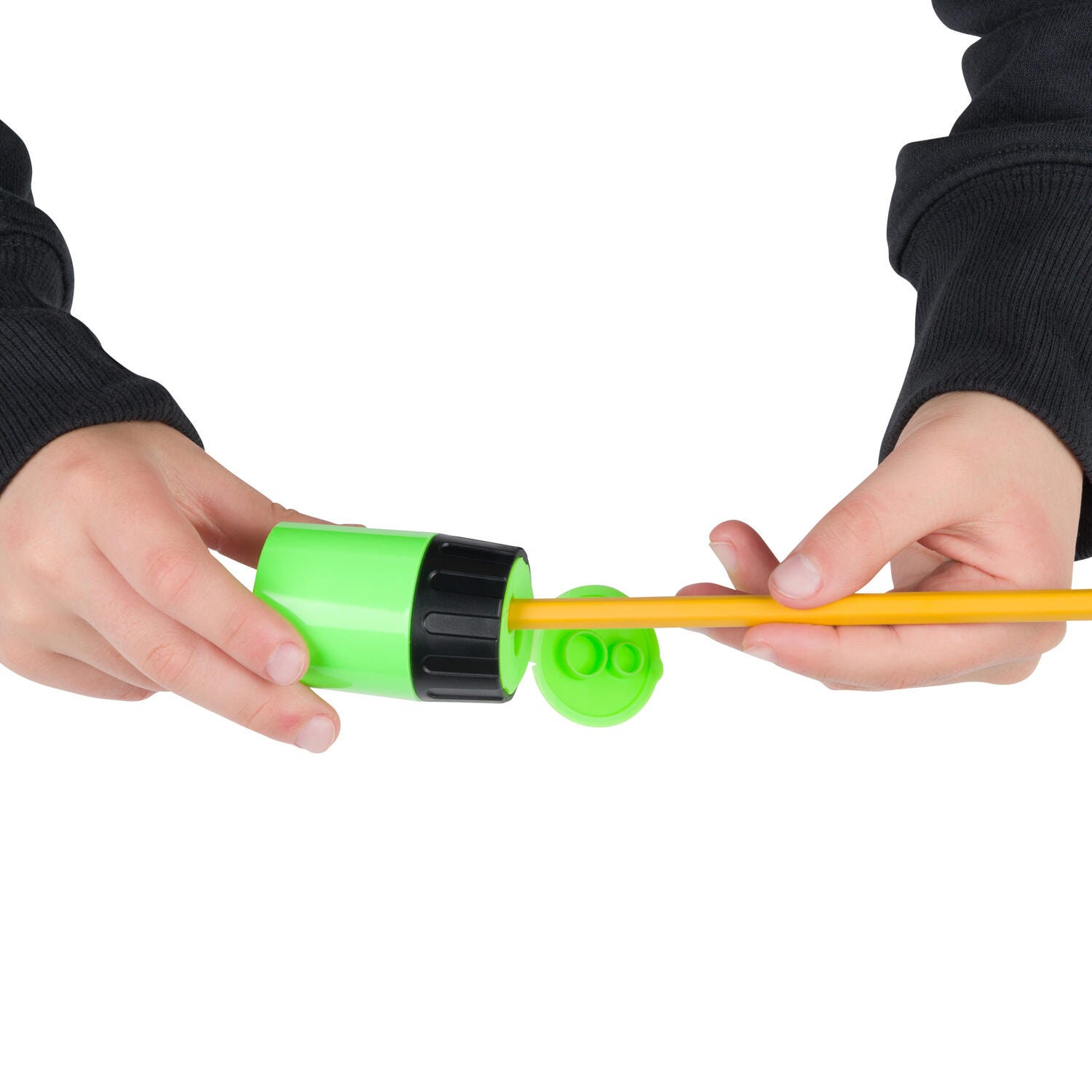 Offering high quality at a low cost, the Eisen 2-Hole Steel Pencil Sharpener from The Pencil Grip Inc delivers exceptional sharpening in a durable, portable cannister. German steel blades hone graphite and colored pencils to precise angles, with the smaller hole accommodating pencils 7 to 8 millimeters in size with a sharpening angle of 24 degrees and a larger hold designed for pencils 10 to 11 millimeters in size and sharpening to an angle of 30 degrees. A twist off cover keeps shavings neat and tidy until it’s time to empty them; a hinged lid keeps shavings from escaping when the sharpener is not in use. Measuring 1-1/2 x 1-1/2 x 2-1/4 inches, the Eisen 2 Hole Pencil Sharpener fits neatly into any backpack or pencil case, making it the perfect tool for any mobile workspace. Assorted colors; sorry, no color choice.