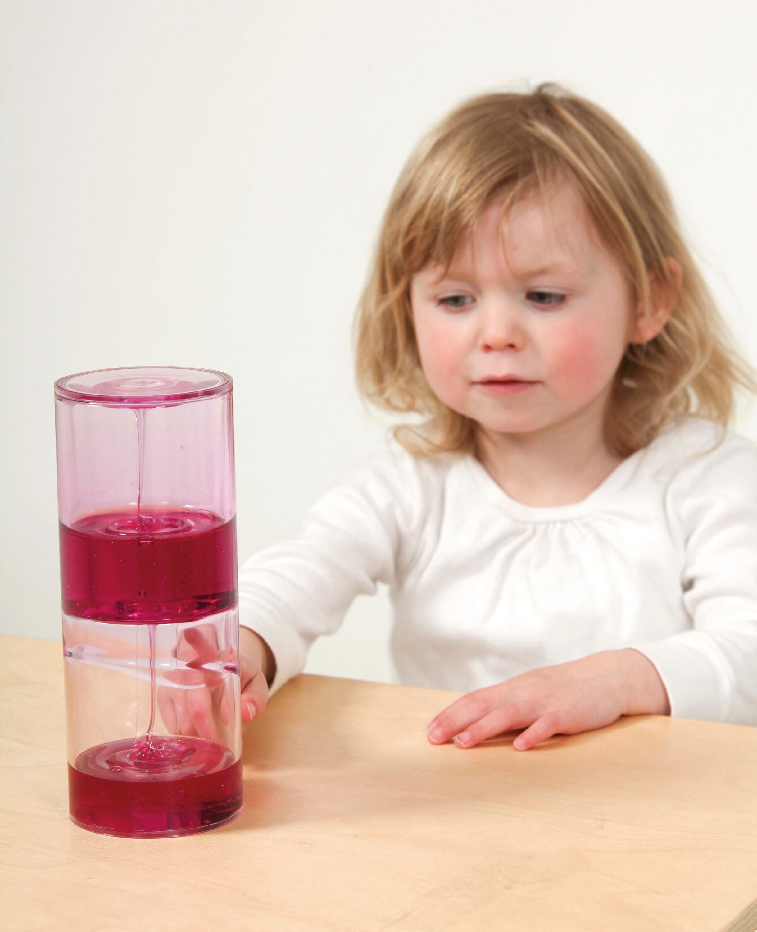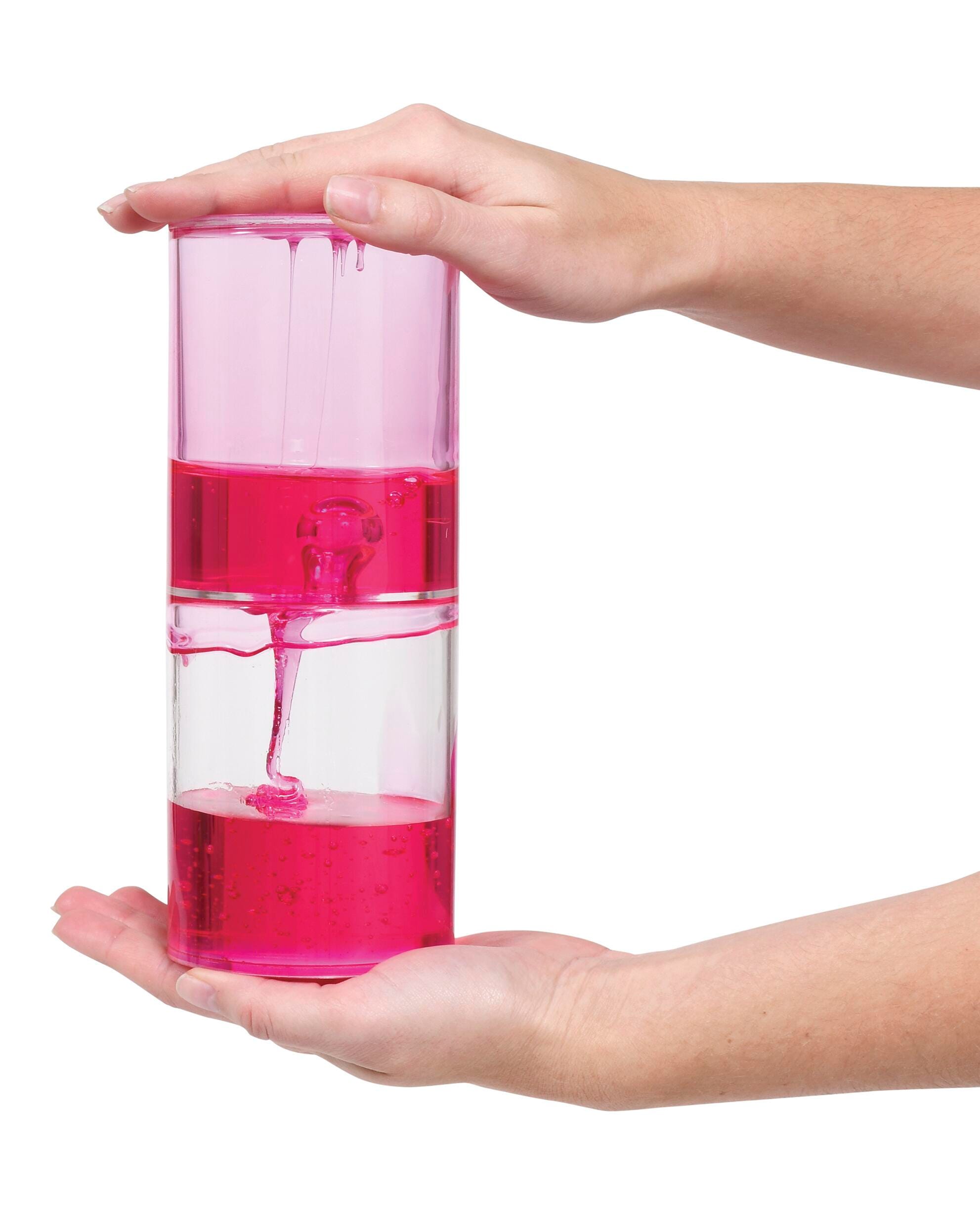 Highly attractive crystal clear sensory Jumbo Ooze Tube contains a thick, pink, gloopy jelly that oozes and spirals to the bottom. Mesmerizing and helps with focus. Made from high impact plastic. Size of tube is 7-7/8 inches in height and 3-1/8 inches in diameter. Appropriate for ages 3 years and up.