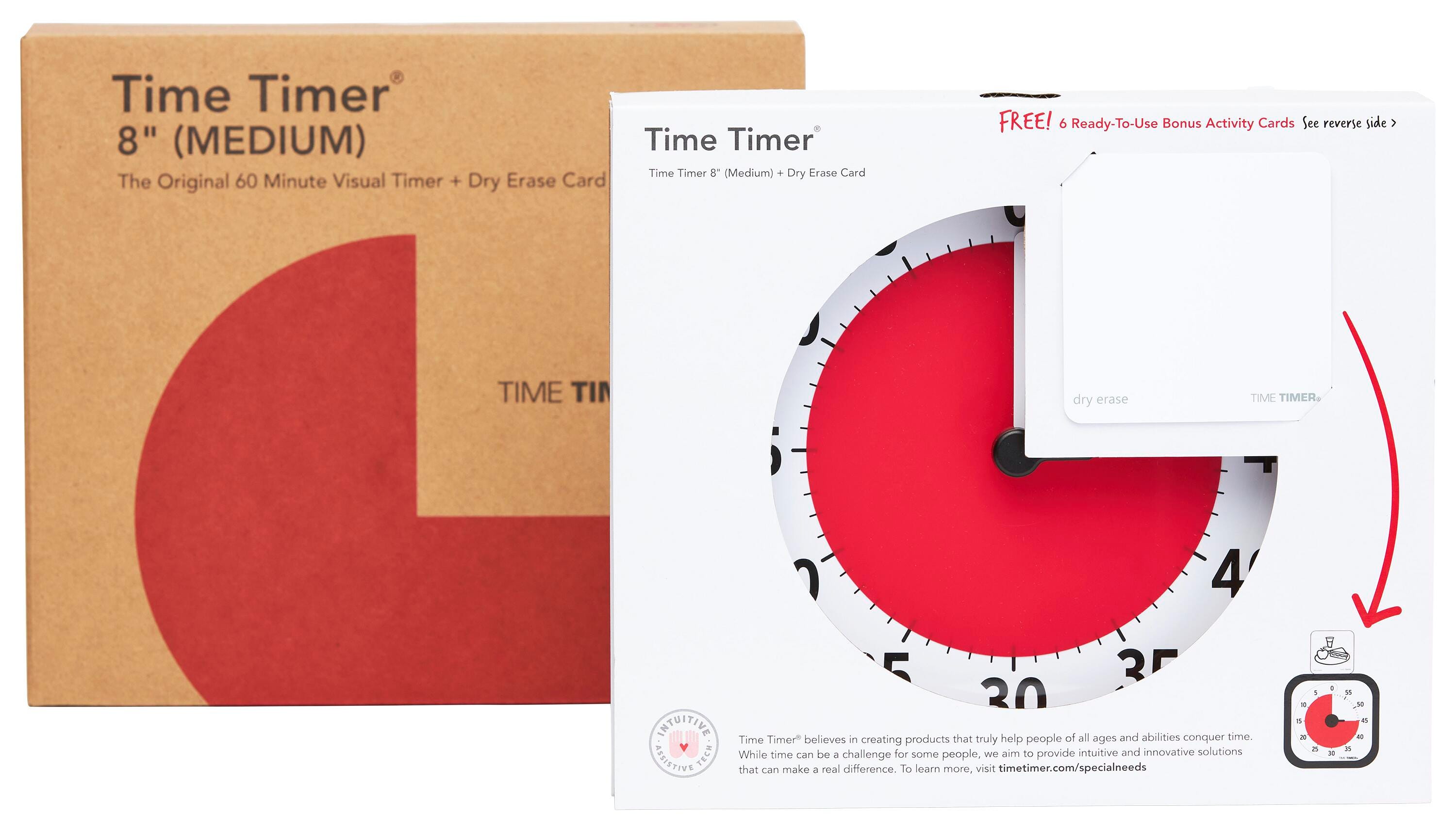 The Original Time Timer series is a family of 60-minute timers that have empowered people of all ages and abilities to manage time, transitions and productivity! The middle size of the Original family, the Time Timer Original 8" is perfect for individual and small group use. The Original 8" has increased functionality and includes magnets, center set knob, clear protective lens cover, dry erase activity card and free desktop Time Timer app download.