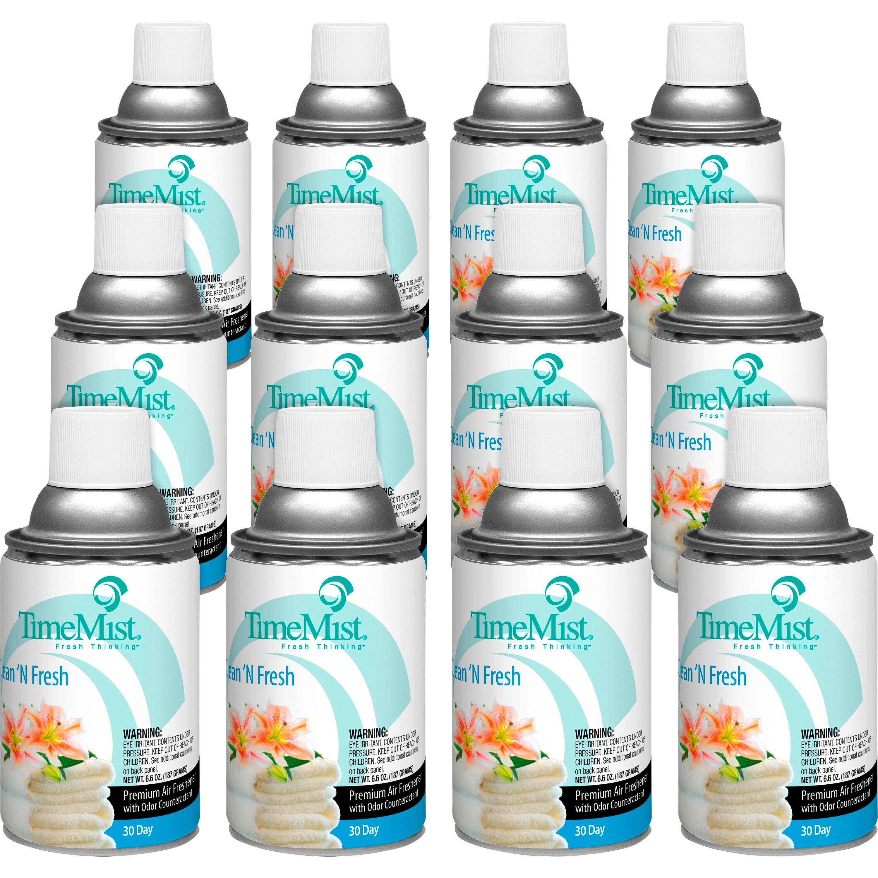 TimeMist Metered 30 Day Air Freshener Spray Refill, 6.6 Ounces, Clean Fresh Scent, Case of 12