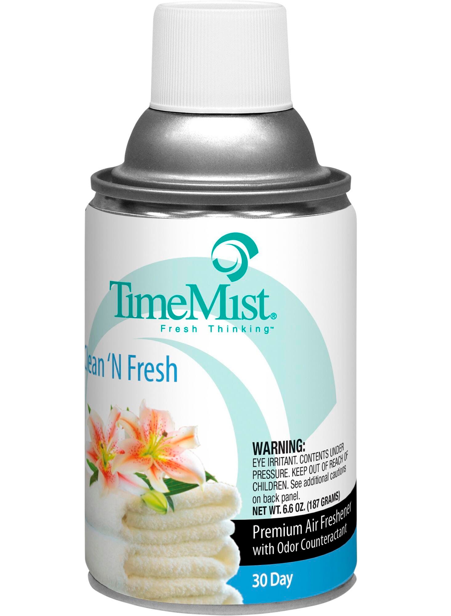 TimeMist Metered Dispenser Clean & Fresh Refill is a premium-quality air freshener that contains a uniquely formulated, long-lasting fragrance and its effective odor counteractants neutralize stubborn odors swiftly and provides lasting aromatherapy. Use Clean and Fresh scented refill in TimeMist full-sized, metered fragrance dispensers. Air freshener is formulated to counteract odors and leave behind a pleasant aroma. Air freshener contains a low VOC formula. Sprayed with a dispenser, the refill is effective for up to 6,000 cubic feet and lasts 30 days. Clean and Fresh scent.