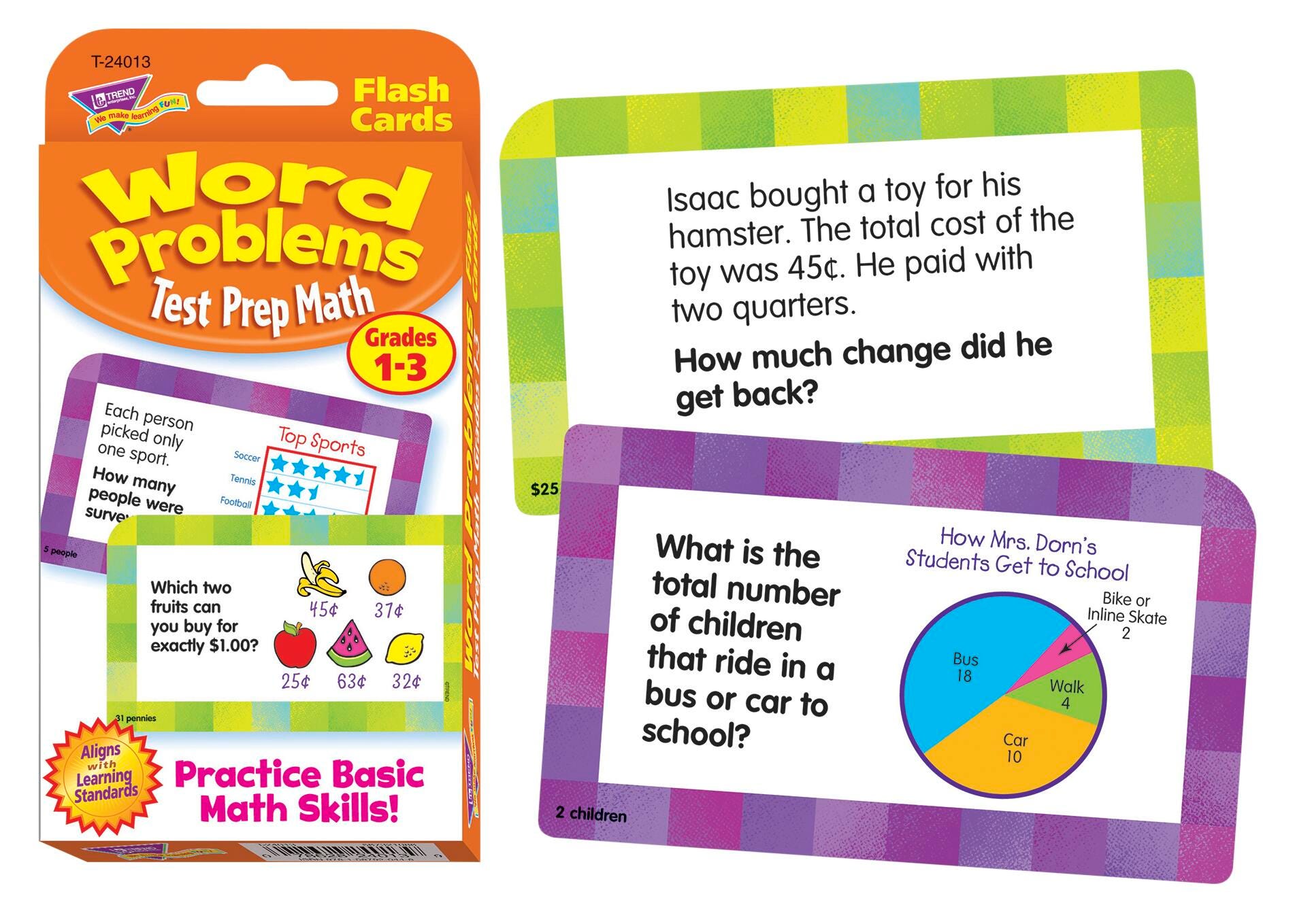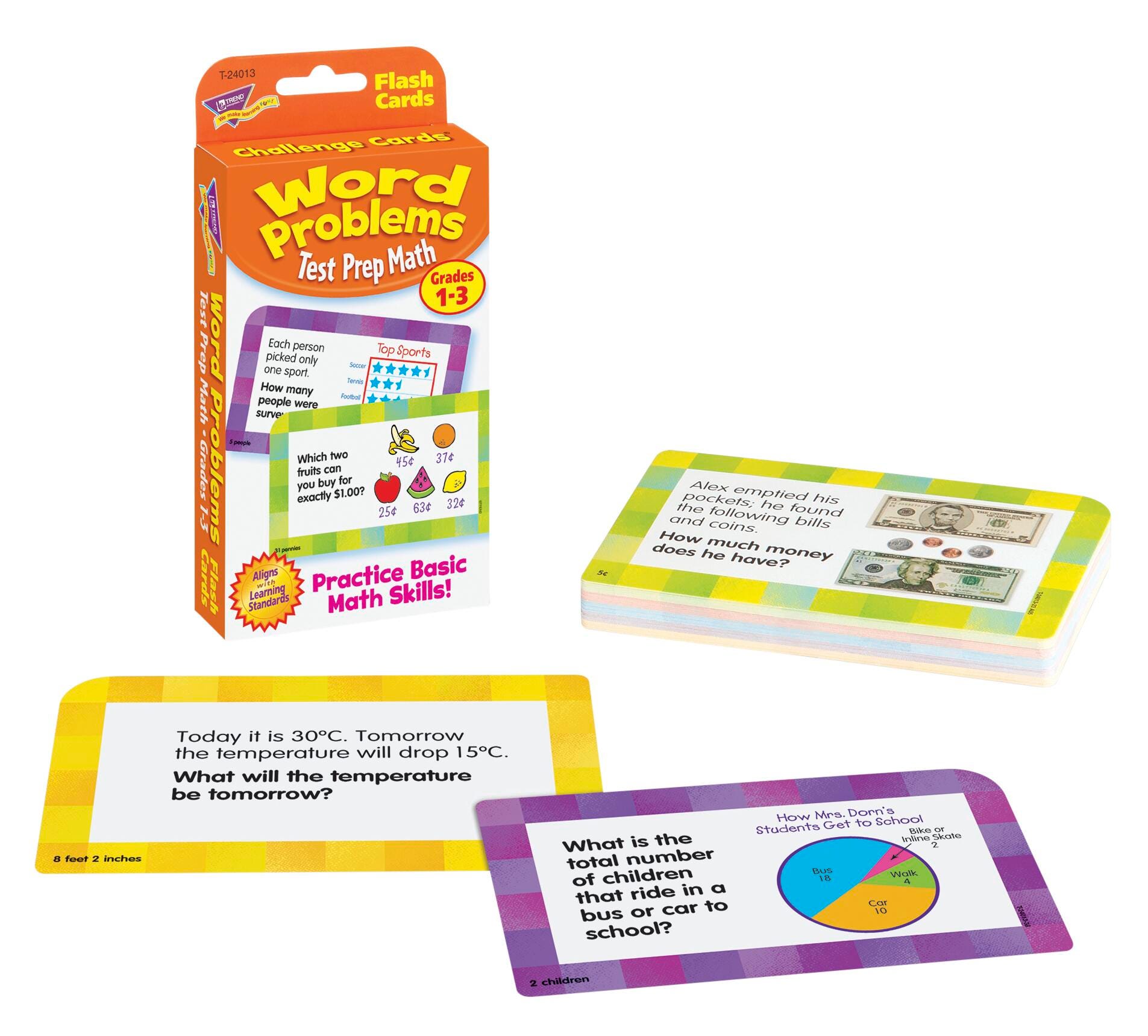 Prepare for assessments in a fun way with questions about charts, graphs, measurement, money, time, algebraic thinking, and other math subjects. Versatile cards adapt to growing abilities for endless rounds of learning fun and mastery. Self-checking, answers on backs. 3 1/8 x 5 1/4 inches. Includes 55 question cards, and 1 activity card.Features