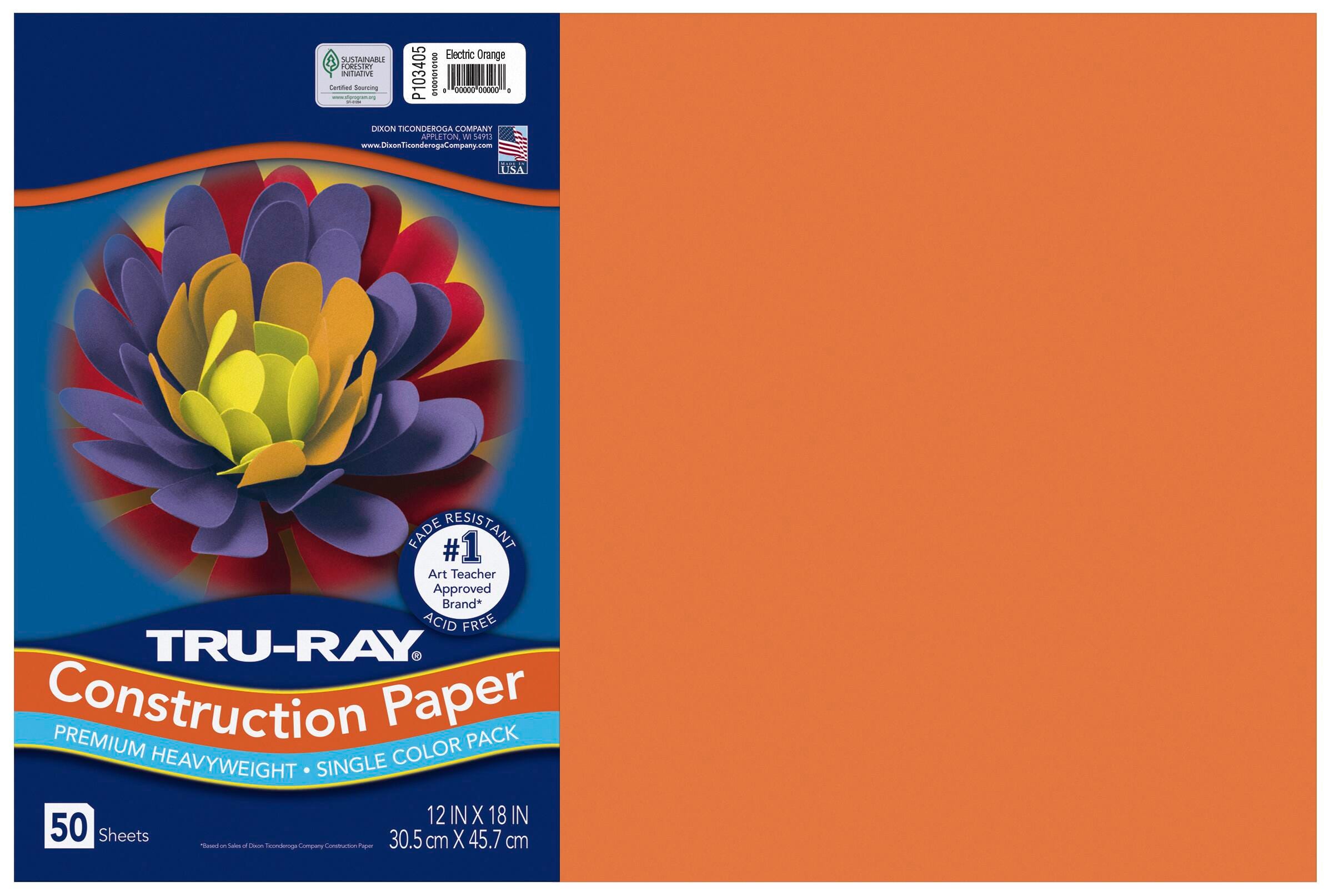 Create something great with heavyweight construction paper from Tru-Ray. Heavyweight 100 percent vat-dyed sulphite paper features longer, stronger, fibers that are tough enough to take scoring, folding, and curling without cracking or tearing. The paper's superior fade resistance keeps projects brighter and fresher for longer. Pack of construction paper in Electric Orange color includes 50 sheets measuring 12 x 18 inches each.Features