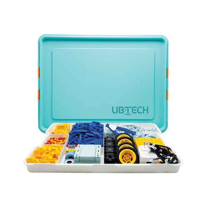 The uKit AI Intermediate Class Pack comprises 8 uKit AI Intermediate kits, which can serve up to 32 students (4 students per uKit) for grades 3-8. Each kit includes 500+ building pieces, an AI-enhanced MCB with a microphone, speaker, and voice recognition, a sensor pack, and 4 servo motors. Students can access instructions for at least 13 robots per kit or build and code custom creations through 2 software environments, the uKit EDU app and uCode. In addition, each kit includes 5 diverse curriculum options, open-ended challenges, and access to an online training portal.Features