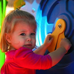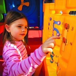 Maximum engagement in a compact size. This structure lets young children interact with everything from a rain wheel to a bongo drum to a clock panel.