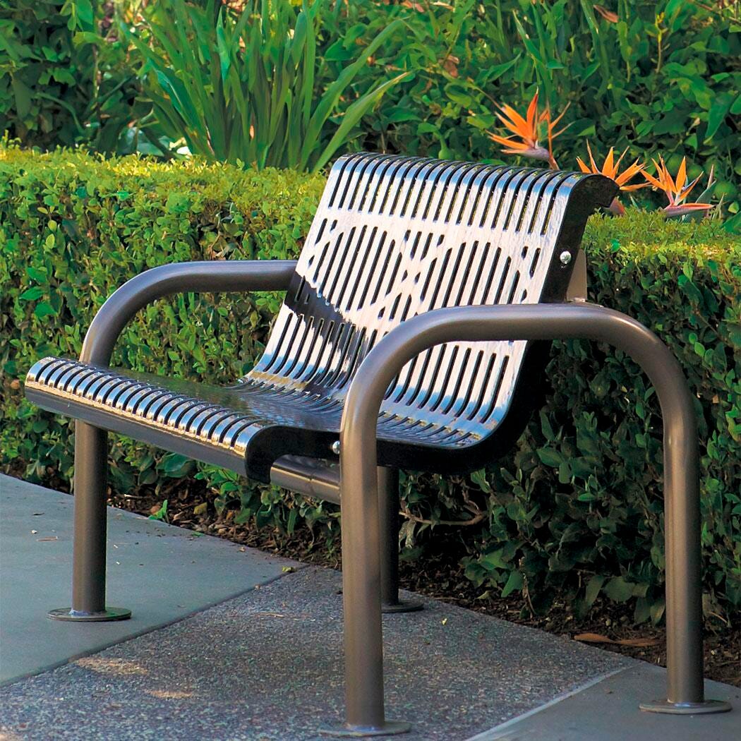 This UltraSite 966 Series Contour Bench is built durable to withstand high-traffic areas, and is designed with a contour that makes this a comfortable seating option in your outdoor space. This Contour Bench is constructed with a cast aluminum frame with the UltraCoat thermoplastic finish to withstand rust, weather, and wear, and is built to be an aesthetic yet durable seating bench. This bench is both portable and surface mountable, depending on your outdoor recreation area's needs. Some assembly is required.