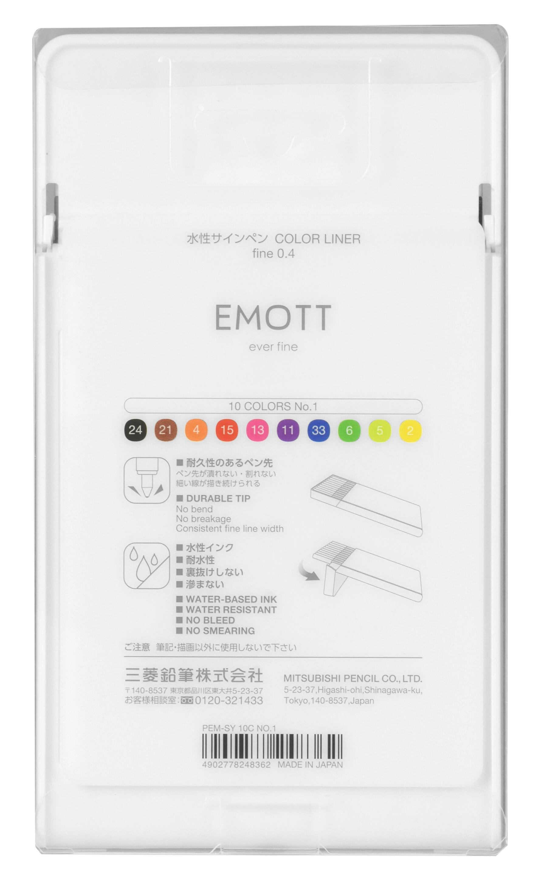 uni EMOTT Fineliner Marker Pen, 0.4 mm, Assorted Colors, Set of 10