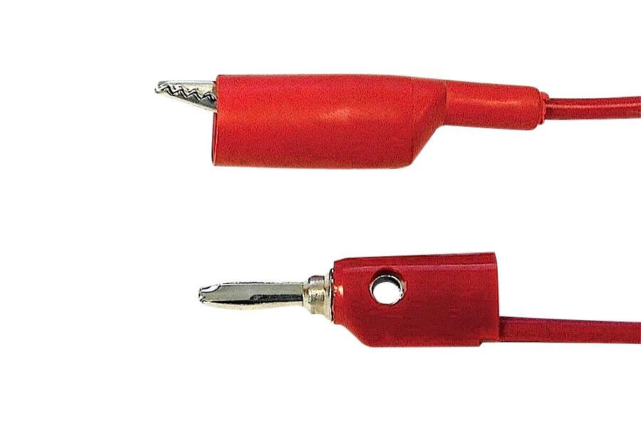 Pack of 6 banana plug / alligator clip cords, each 12 inches long -- includes three red and three black leads. Flexible, 18 gauge (SWG) stranded wire cord with a stackable banana plug at one end and an alligator clip at the other end.Features