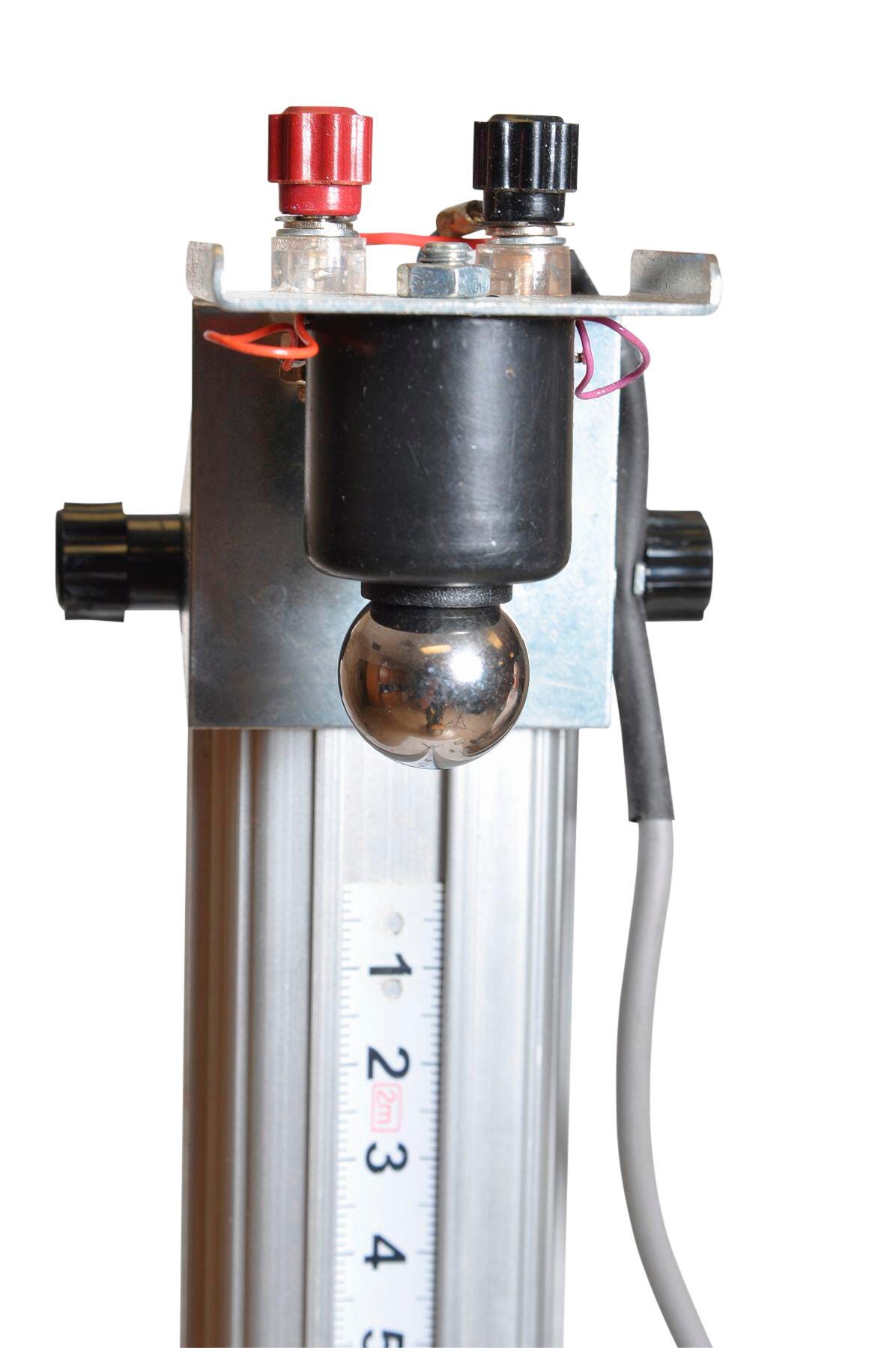 This convenient free fall apparatus for measuring the acceleration of gravity has a 150cm fall length. It includes an electromagnetic ball release, a pair of photogates on a long cable harness, two steel balls, a plumb line, and a catcher. Requires a digital timer DTPHG1 (not included). Includes activity guide.