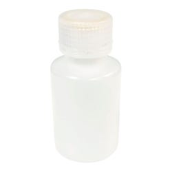 This unique narrow mouth bottle has a capacity of 90ml and a lined polypropylene lid. Constructed of high density polyethylene, the bottle is translucent, pliable, and has excellent strength.Features