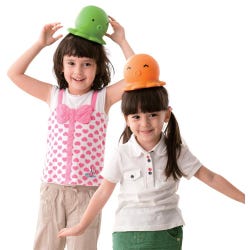 There is no cuter way to help with coordination and physical balance than with these adorable Up On Top pieces. Stack and balance up to 3 of these soft, lightweight toppers on your head while standing or walking. They make little to no noise when dropped. This 3-piece set includes 1 blue, 1 green and 1 orange topper each measuring 6 x 6 x 4-3/4 inches.Features
