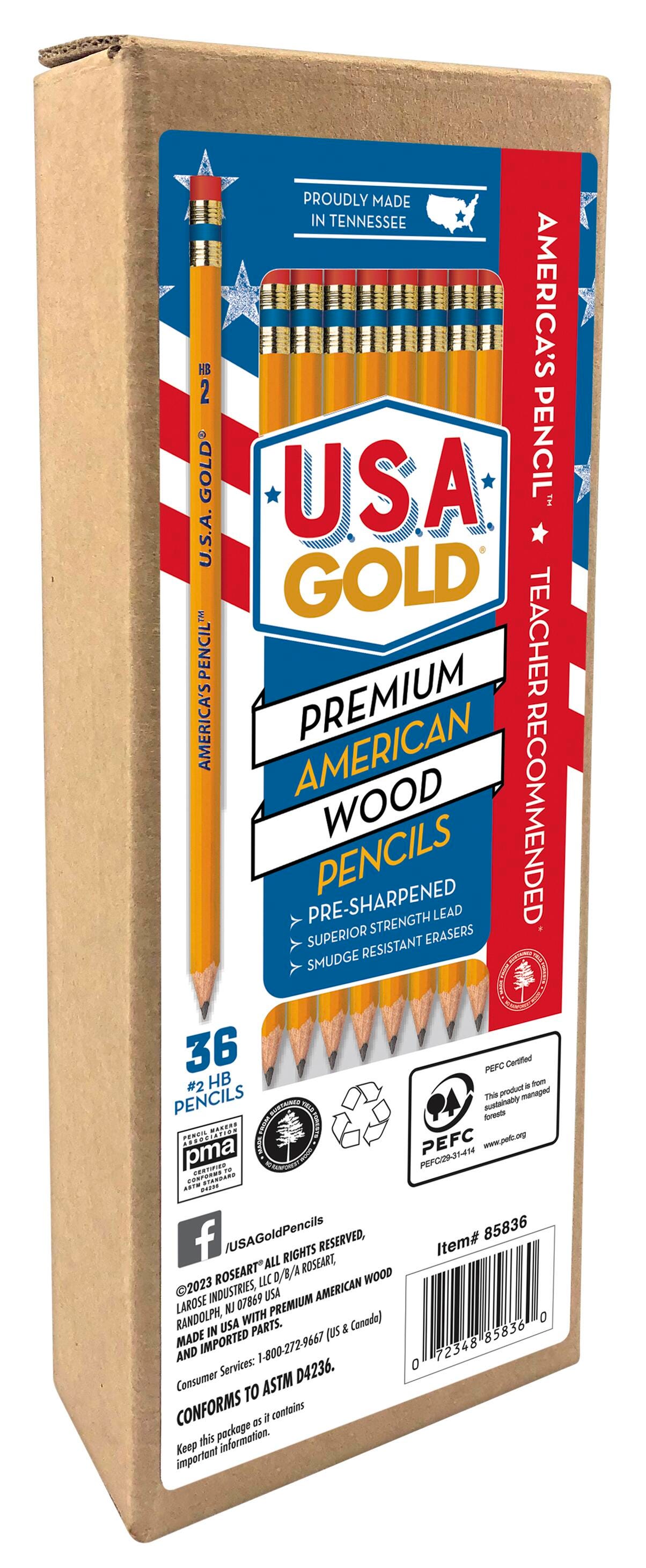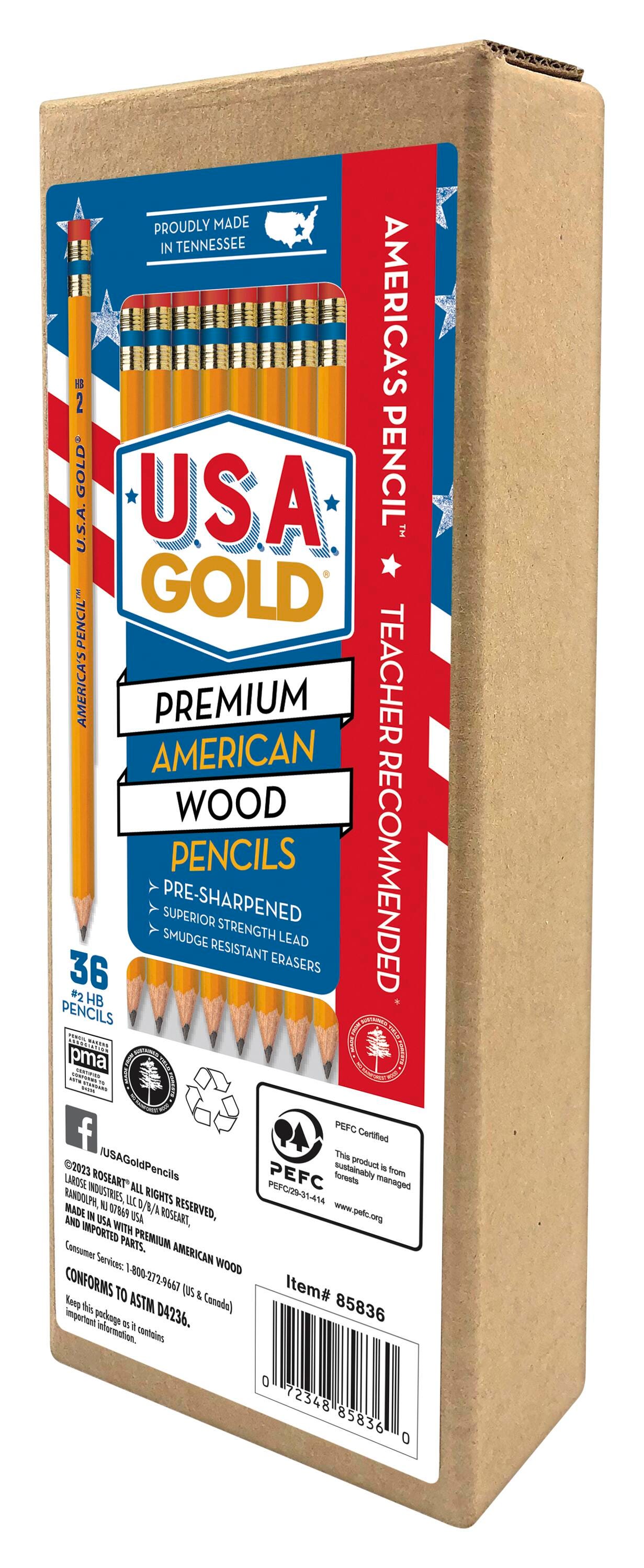 USA Gold Woodcase Pencils, No 2, Pre-Sharpened, Pack of 36