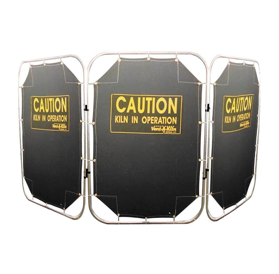 Vent a Kiln Flame-Retardant Safety Screen with 3 panel features clear caution graphics on three 24 x 36 inch flame-retardant panels supported by corrosion-resistant aluminum frames. Portable and free-standing screen that is expandable protects workers and students.
