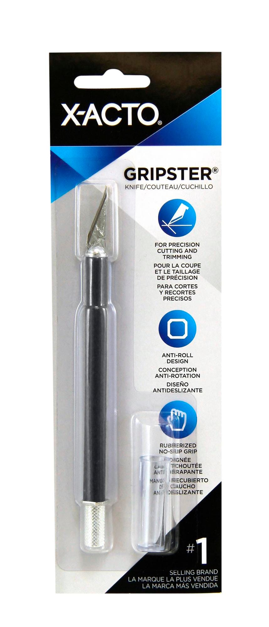 This X-ACTO No. 1 Gripster Knife is perfect for precisely cutting tapes, film, plastic, paper, and more. It includes a safety cap and No. 11 blade. The knife also features an anti-roll device, a rubberized handle for easy grip, and a rear release mechanism to ensure that the blade stays secure. This knife is compatible with any X-ACTO blade that fits a No. 1 handle.Features